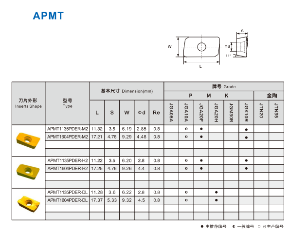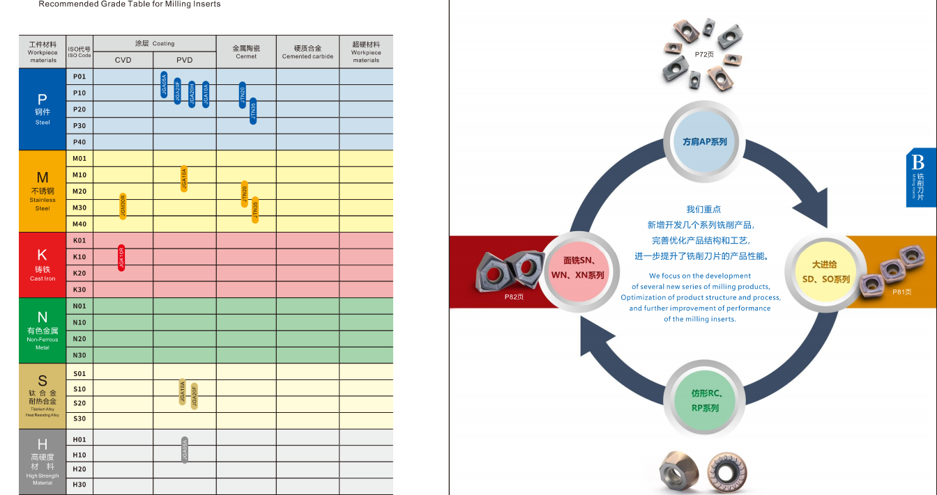 Workpiece material: P10-P30, M10-M35, K10-K40, etc.